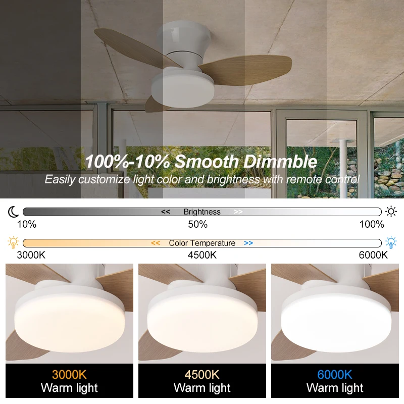 Deckenventilatoren aus Amerika mit Licht und Fernbedienung 25 35 Zoll einstellbares Licht 3-Flügel Moderner Hausdeckenventilator mit LED-Licht