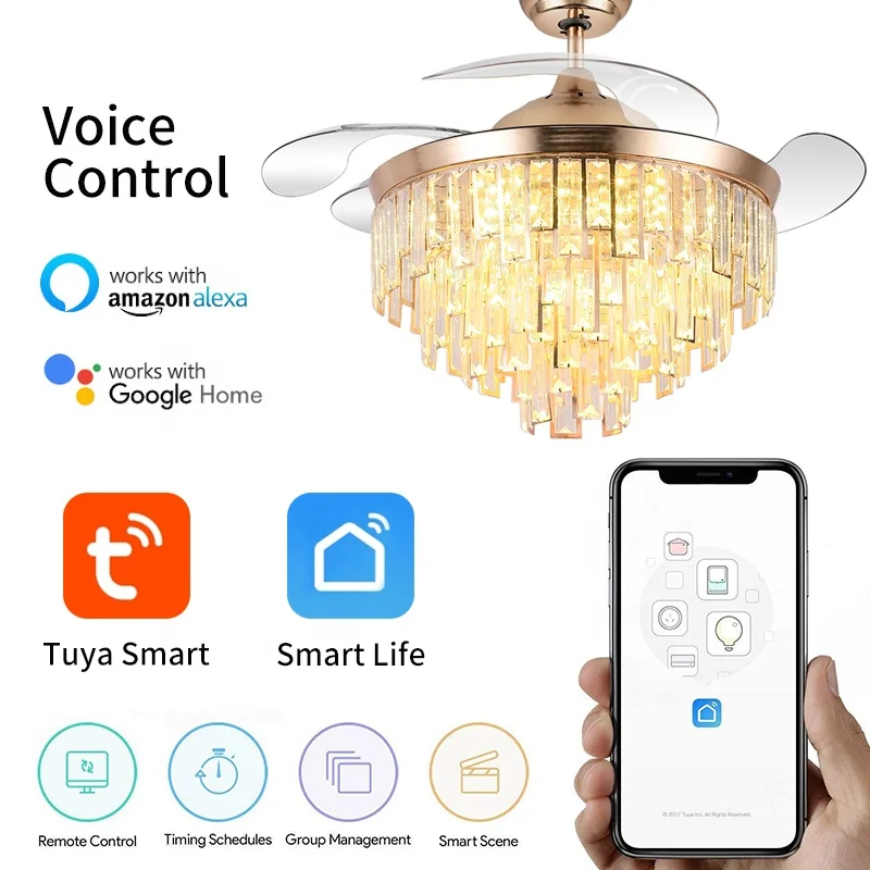 YeshengPräsentation der Y162 Luxury 42 Zoll Moderner Kristall Deckenventilator, die perfekte Ergänzung für jedes Schlafzimmer. Dieser beeindruckende Ventilator vereint Stil und Funktionalität, mit einer schlanken unsichtbaren D...