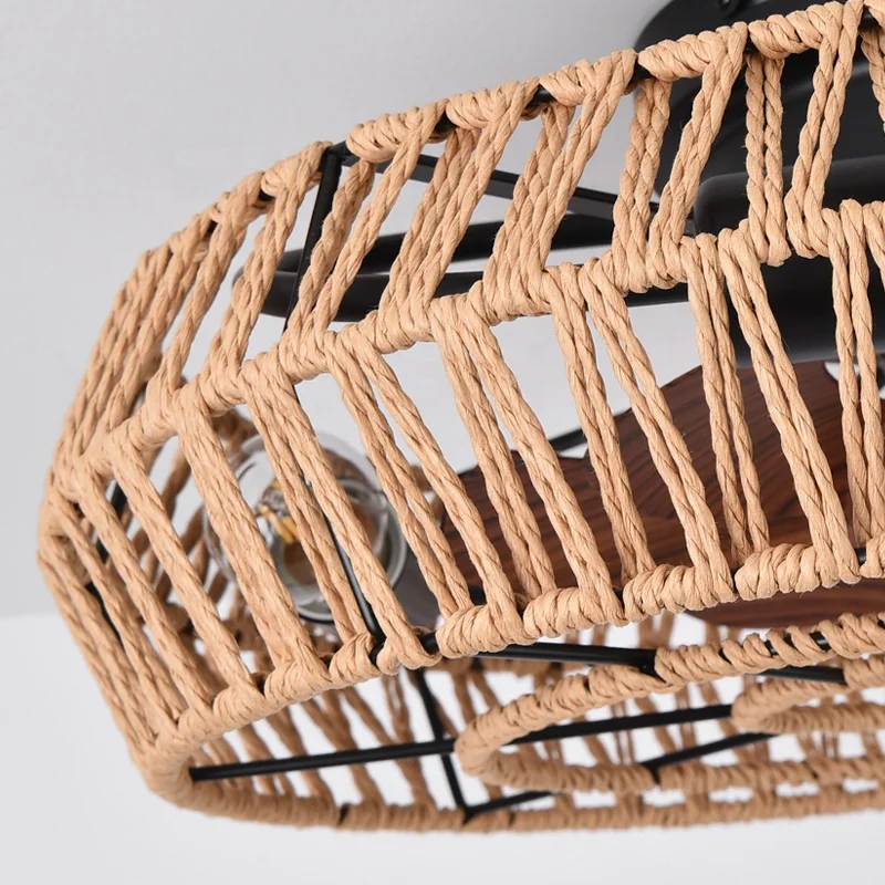Introducing the Wholesale Flush Mount Cage Ceiling Fan Light by Yesheng! This stunning farmhouse caged rattan ceiling fan light is the perfect addition to any bedroom, adding a touch of vintage charm and style to your space.